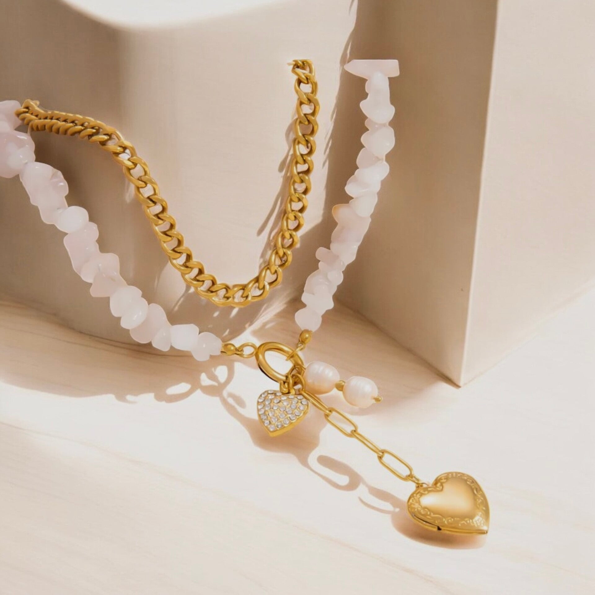 Natural Rose Quartz Stone Double Layer Necklace
