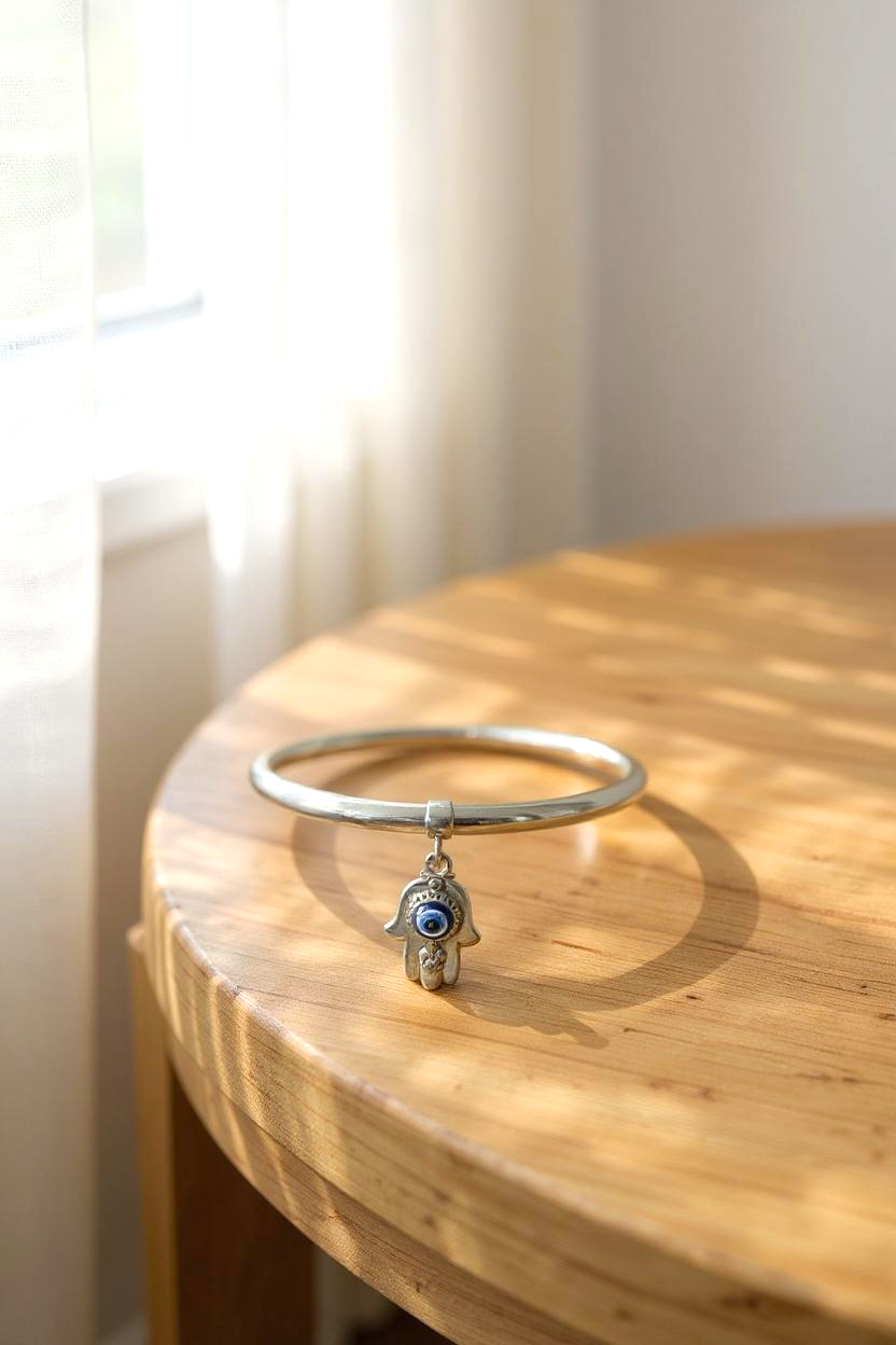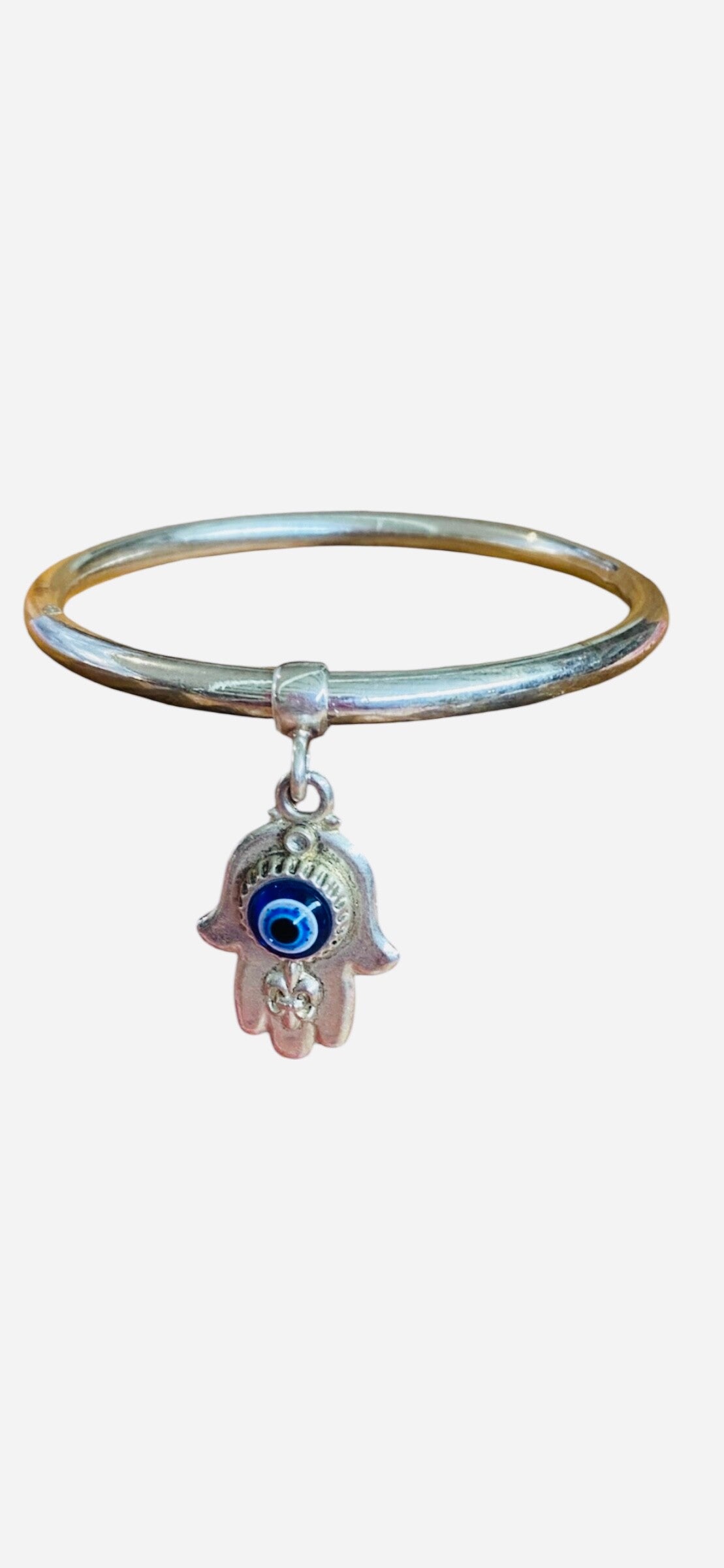 Evil Eye Charm Bangle Sterling Silver